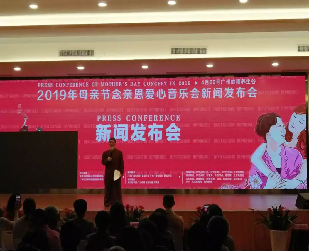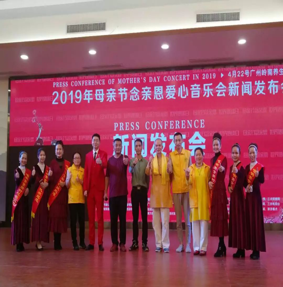 2019年4月22日上午在岭南养生谷演艺中心,举行“5.12母亲节念亲恩爱心音乐会”新闻发布会,暨世界地球日庆祝活动!