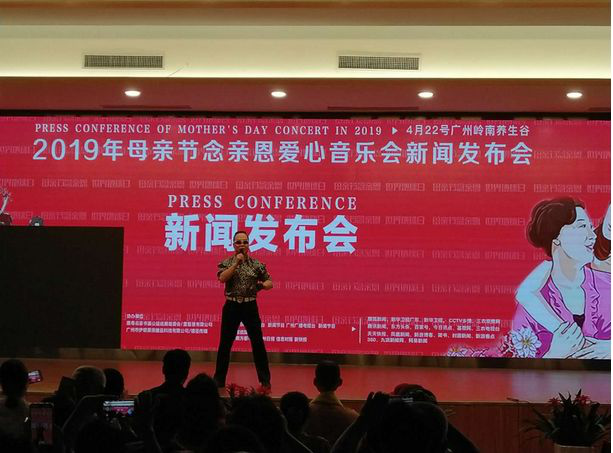 2019年4月22日上午在岭南养生谷演艺中心,举行“5.12母亲节念亲恩爱心音乐会”新闻发布会,暨世界地球日庆祝活动!