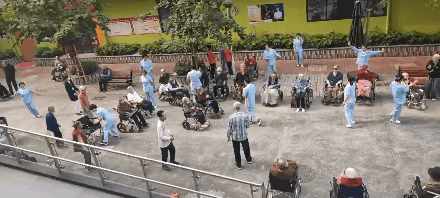 卢叔带着音响如约而至欢快的音乐响起吸引楼上楼下的长者纷至沓来等时间差不多了卢叔便把音乐换成了健康操辛院的口令从音响中传出众人跟着口令拍拍手臂,揉揉肚子熟悉的画面日复一日