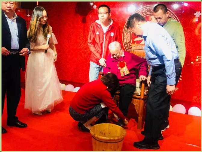除了每月会员长者生日宴以外,岭南养生谷还筹备着“传统生日家宴”的小型生日会,生日家宴中会举行:子女对父母行礼、洗脚、敬茶等一系列中华民族传统礼仪,可见岭南养生谷也在用自己的方式,将这种传统文化在新时代延伸至青年人的思想中。